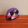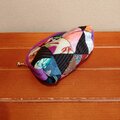 三角モチーフ 着物パッチワーク楕円型ポーチ(中)