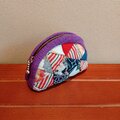 三角モチーフ 着物パッチワーク楕円型ポーチ(中)