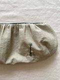 ふんわりギャザーを寄せた横長のラウンドポーチです。家にあるアコースティックギターを刺繍しました。二重織りの綿でしっかりした感触で素朴な風合い。中はライトパープルの綿です。バッグインバッグとしてまたはそのまま持ってみたり、自由にお使いいただけたら嬉しいです。