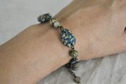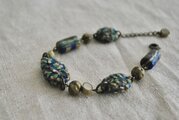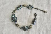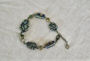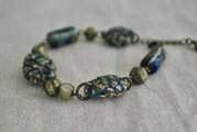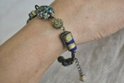 同じ感じの色目でいろいろな形のビーズを集めたブレスレット。
