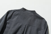 スキッパーネックと低めのスタンドカラーが清潔感ある印象に。前後差をつけたラウンドヘムが、横や後ろから見てもきれいなシルエットをかなえます。