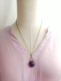 ヴィンテージ 深いパープルが美しい円い一滴のネックレス