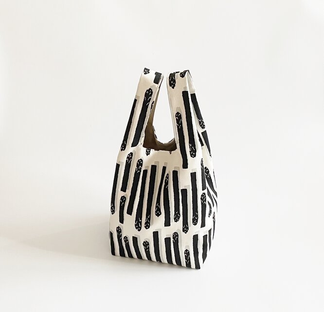 ユニークなアスパラガス柄 毎日使いたくなるマルシェバッグ 手提げトート 白黒 モノトーン