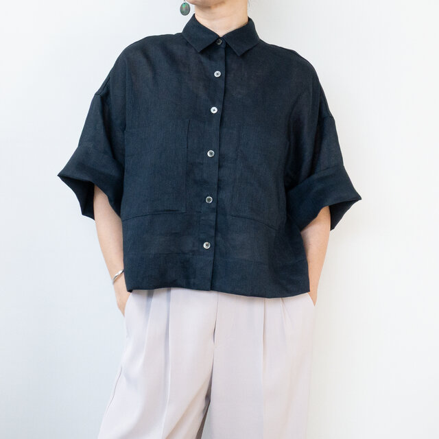 極上リネンのシアーなゆったりショートシャツと同型
