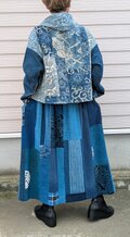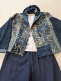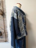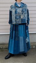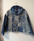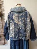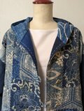 古布リメイク 型染の刺し子ミニフードジャケット 古布 着物リメイク 藍染 着物リメイク