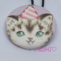 子猫とパーティーハットの生地を使ったかわいいくるみボタンのヘアゴム♥️
