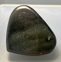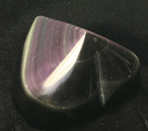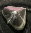 暗い場所で見ると黒い石に見えますが、うっすら虹色の層が見えます。角度を変える事で見え方が変わる為