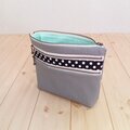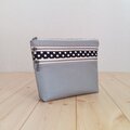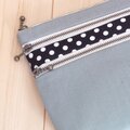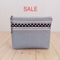 【値下げ】4段ファスナーポーチ+ポケット 20cmバッグインバッグ シルバーデニム 水玉/ドット 母子手帳・通帳ケース 568