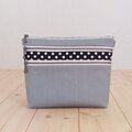飽きが来ない、シルバーとブラックの組み合わせの、4段ファスナーポーチです。