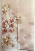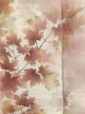 手紡ぎ手織り麻の生地に ろうけつ染で楓を描きました。鮮やかな楓の赤が秋の訪れを
