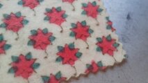 白地にピンク色の花のような、星のような…モチーフがちりばめられた柄のエコラップです。