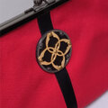 糸切りはさみをモチーフにしたオリジナルエンブレムの金具が特徴的。