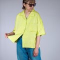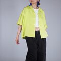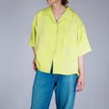 着物リメイク レディース シルクシャツL スナップボタン 正絹着物 オープンカラー ライムイエロー オーバーサイズ