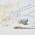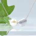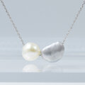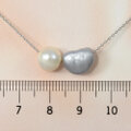 白くて丸い淡水パールと、グレーカラーのバロックパールを組み合わせたネックレスです。