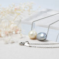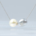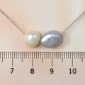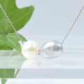 白くて丸い淡水パールと、グレーカラーのバロックパールを組み合わせたネックレスです。