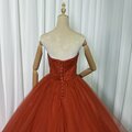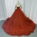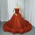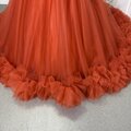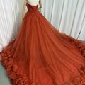 カラードレス オレンジ ベアトップ 華やかなトレーン チュールスカート 大人っぽい 披露宴