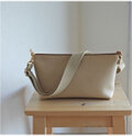 作品が到着いたしました。 優しいラテグレージュ色と細いレザーハンドルが、とても上品でフェミニンな印象の素敵なバッグですね。 季節を問わず活躍してくれる事間違いありません。ありがとうございました。