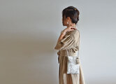 ●秋のベージュコーデにもブラックコーデやエクリュコーデにも溶け込んでくれる落ち着いたベージュカラーベースのスマホポーチ。