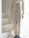 パンツは長めですが、足首で止まりますので身長の小さな方は足首上に少し生地が弛んでより温か。ウエスト内側にゴム穴を開けていますのでご自身でゴム調整が可能です。