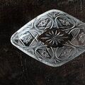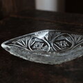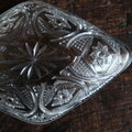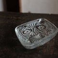 【サマー特価¥1000⇨¥750】お刺身を乗せたくなる◆菱形で素敵。 花文プレスガラス変形皿 夏 昭和中期【縁にアタリi1】