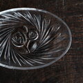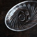 【サマー特価¥1250⇨¥850】見込みに薔薇◆お刺身を盛り付けたくなる。昭和後期 プレスガラスオーバル皿 クリスタルガラス