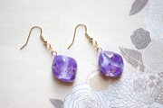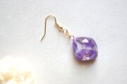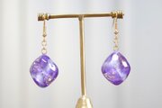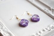 パープルとホワイトのマーブル模様と、きらめくラメが華やかで美しいピアス。