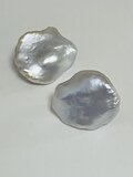 青みを帯びたシルバー光沢、まるで花びらのようなかたちの淡水真珠で作ったスタッドピアスです。