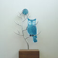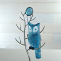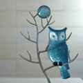 蒼い月あかりに照らされて 木の枝に留まっているフクロウのオブジェです。