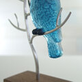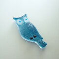 蒼いフクロウは、背面から光をふんわりと纏うように 裏側に無色透明なガラスを入れています。