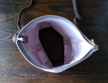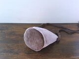豚革 スエードを使った丸底型のポシェット 一点物 です。