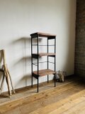 風合いある古材を採用した棚板とアイアンフレームにてシンプルに仕上げております。