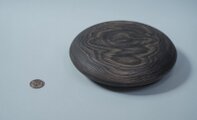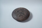 タモの木の丸箱。鉄と柿渋で染めています。