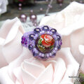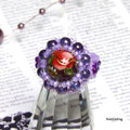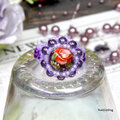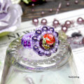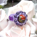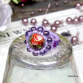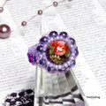 赤バラ転写のパープルにチェコビーズリング(転写玉/チェコビーズ ビーズリング)《ビーズアクセサリー》