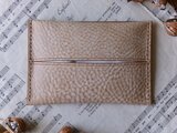 ・上質なイタリアンレザーを使ったポケットティッシュカバーです。一般的な8㎝x11㎝(厚さ1㎝)のポケットティッシュを入れることができます。