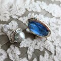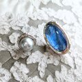 [SV925]Souju-蒼珠- ピアス カイヤナイト パール ハワイアンジュエリー 鎚目 アシンメトリー