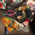 チャーム等、手縫いで縫い付けています。強い力を加えると破損しますので優しく取り扱い下さいませ。