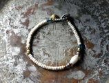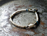 アフリカ出土瑪瑙とoldチンシルバー&オリッサブラス、ホワイト&インディゴブルービーズを繋いだブレスです。