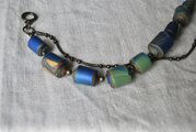 大小のビーズとメタルビーズをランダムにつなぎ合わせ、チェーンと2連にして