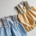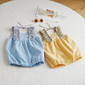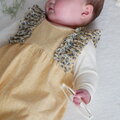小花柄の可愛らしいフリルがふんだんに付いたロンパースです。