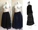 レース生地と紺のプリント生地を重ねたリバーシブルデザインのスカートです。