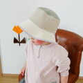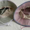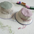 淡いパステル調の色合いと、つばのパイピングがアクセントになっていて、