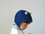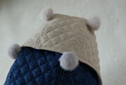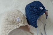裏地にダブルガーゼを使用したくま耳キルト帽子です。