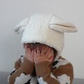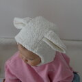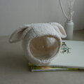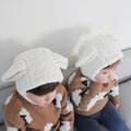 ちょっぴり大きめのひつじ耳がポイントで、お耳を持ちあげるとウサギさんにも変身♪