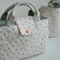 キルト生地のふわっとした肌触り、スナップ釦でがばっと開いて取り出しやすい♪