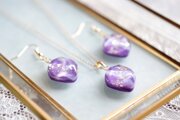 パープルとホワイトのマーブル模様と、きらめくラメが華やかで美しいペンダント。