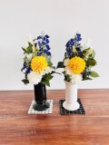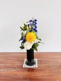 【 お仏花ブーケ 】ピンポンマム イエロー新作供花を購入しました。花束様にラッピングしてくださって一緒に注文の花器と同梱で丁寧に送ってくださいました。本物のような造花、アーティフィシャルフラワーというのですね。AIならぬAFでしょうか。プリザーブドよりも丈夫そうな、優しくそっと拭くこともできそうです。花材組み合わせがとても自然で美しく見ていて和みます。