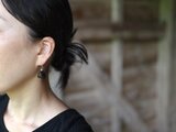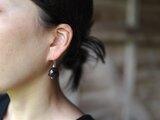 耳もとに近い場所でゆったりと揺れる大粒ガーネット、アクセントとして力強く装いを引き立てます。