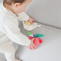 りんごと目玉焼きの音が鳴るおもちゃは、遊び心ある他にないデザインで、おままごとに使っても楽しい♪