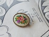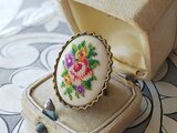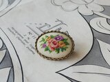 ヴィンテージ プチポワン 薔薇と小花のブローチ