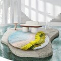 縦横千鳥織りという技法で、色を2回織り込むことでシルクのような光沢感を出しました。 一般的な糸をブレンドしてさまざまな形や模様を作り出します。 カラーマッチング、素材感の衝突と融合、多彩な織り技術により、まるで芸術作品のようなモルディブのカーペットです。